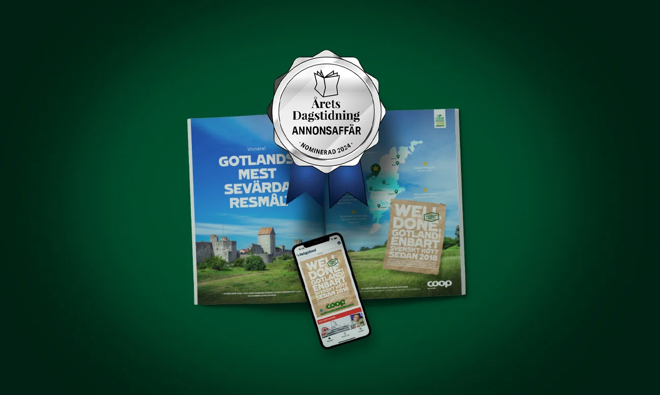 ”Att våga vara stor i det lilla samtidigt som man använder hela kraften skapar genomslag. Är man dessutom modig i sitt uttryck skapar det framgång och skapar nya unika möten, på nya platser, för båda kända och okända besökare! Nominerade till Årets Annonsaffär är: NTM Media och Stora Coop Visby.”