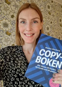 Från start helt enkelt? Ju tidigare desto bättre. För en copywriter är inte enbart en person som skriver, utan framför allt en person som tänker och tar reda på saker och ting. Och det vill jag beskriva i den här nya copyboken. Den skulle kunna hetat ”processen” faktiskt den här boken, men det var tydligen upptaget, den boktitel. Men den beskriver verkligen hur du jobbar från att börja ta reda på vem du skriver, till vad du säljer, vad du löser för problem, börja planera din text, tänka, hur kan jag berätta om det här på ett sätt som inte är helt förväntat som alla andra redan har gjort? Hur kan jag berätta det här på ett nytt spännande sätt som folk vill läsa och sedan skriver du.